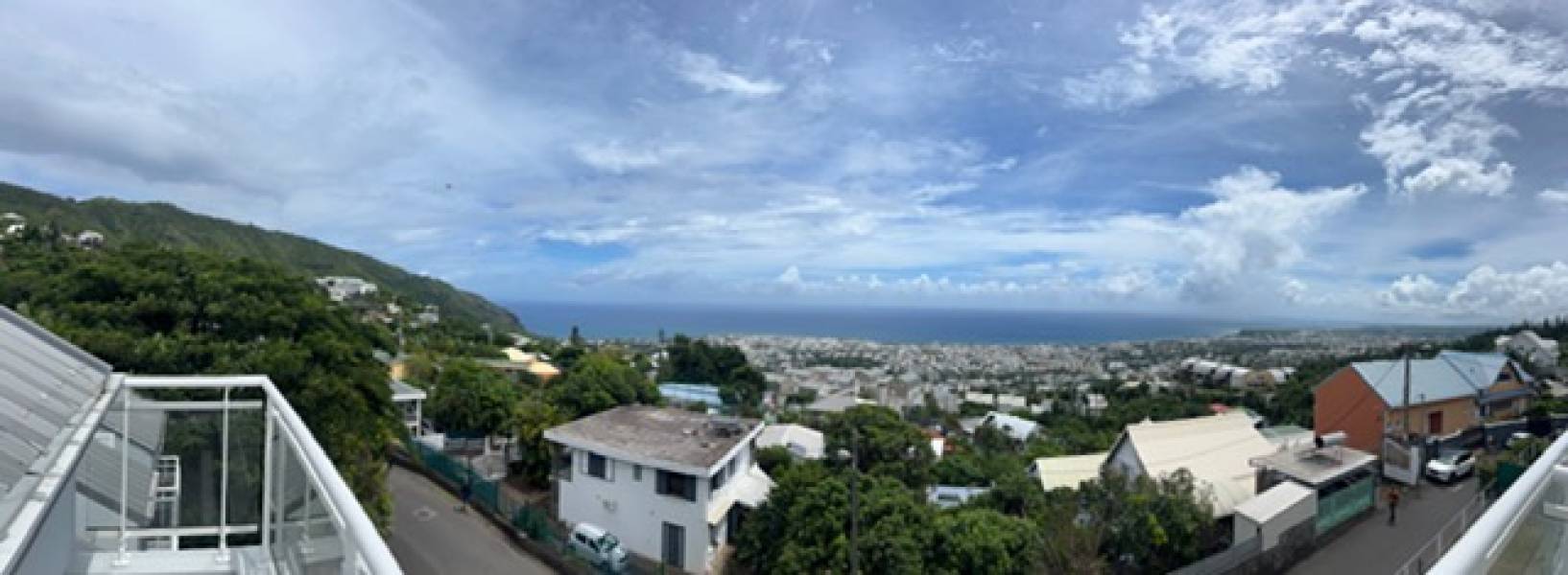 Cette varangue bénéficie d’une vue mer panoramique et dominante, avec un horizon entièrement dégagé sur Saint-Denis et l’océan Indien, sans vis-à-vis. Un cadre exceptionnel, idéal pour admirer les couchers de soleil, recevoir ou simplement profiter du panorama unique qu’offre Bellepierre.