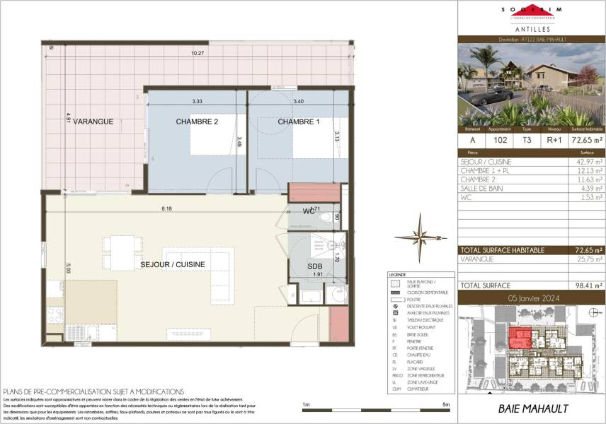Ne manquez pas cette opportunité unique d'acquérir un appartement d'exception à l'une des adresses les plus prisées de Baie-Mahault.
