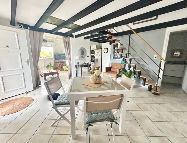 En EXCLUSIVITÉ, situé au cœur d'une résidence sécurisée avec piscine, découvrez cet appartement atypique de type T4 Duplex d’environ 80m2 à Moudong Sud, idéalement placé à proximité des commerces et des axes routiers.