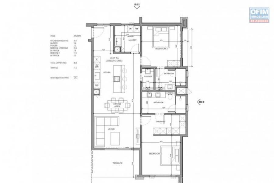 Ofim immobilier vous propose cet appartement de 124 M2 3 pièces, deux chambres à coucher. • L’appartement est composé de 2chambres à coucher • La master bedroom de 20,04 m2 + la salle de bains en suite 7,8 m2 • 1 chambre de 13,60 m2, une salle de bains en suite de 5,3 m2 • Un living lounge, dining, kitchen de 42 m2 • Une cuisine entièrement équipée avec électroménager de marque Bosch • Une buanderie de 4 m2 • Climatisation dans les chambres • La résidence est sécurisée H24 • Parkings privés • Un ascenseur • Un générateur de secours est prévu • Un chauffe eau solaire • Un coffre fort • Une terrasse de 11M2 Réf: 2096GB Prix Rs 18,000,000 Honoraire OFIM: 2% + VAT Pour plus de renseignements ou pour visiter veuillez contacter Nicolas au (+230) 57 48 70 03 disponible sur WhatsApp Agence: 269 1234 Adresse mail: [coordonnées réservées] 16A67793, Numéro de mandat: 2096GB Tél. commercial: (+230) 57 48 70 03