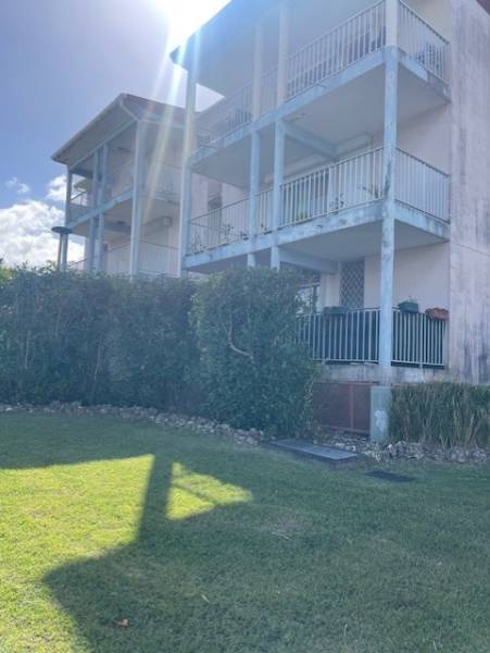 Au Moule, Ce spacieux appartement situé au premier étage comprend un beau sejour lumineux qui s'ouvre sur une terrasse avant, une salle à manger, une cuisine avec sa loggia , un bureau, trois chambres, large degagement, une salle de bains, une salle d'eau, un wc, une buanderie A l'extérieur plusieurs places de parking. Residence sur grand terrain entretenu de 7 082 m2, grand jardin extérieur avec belle pelouse qui en fait un bel air de jeux..