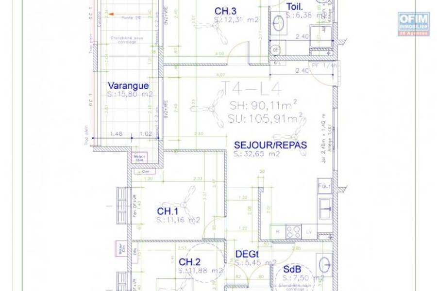 A VENDRE APPARTEMENT F4 DE 101.65 M2 AU CENTRE VILLE DE SAINT DENIS