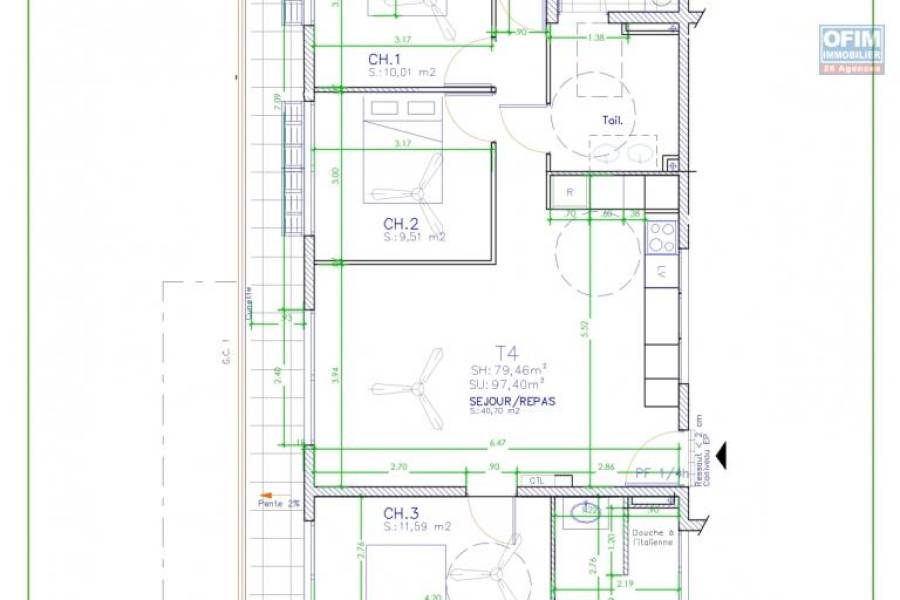 A VENDRE APPARTEMENT F4 DE 103.68 M2 AU CENTRE VILLE DE SAINT DENIS