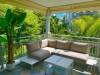 Grande terrasse en L offrant une vue dégagée sur la piscine, parfait pour se détendre ou recevoir