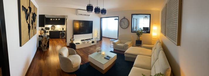 L'appartement possède un salon, un salle à manger, une cuisine premium équipée, 3 chambres dont une master room, un bureau, 2 salles de bain et deux WC.