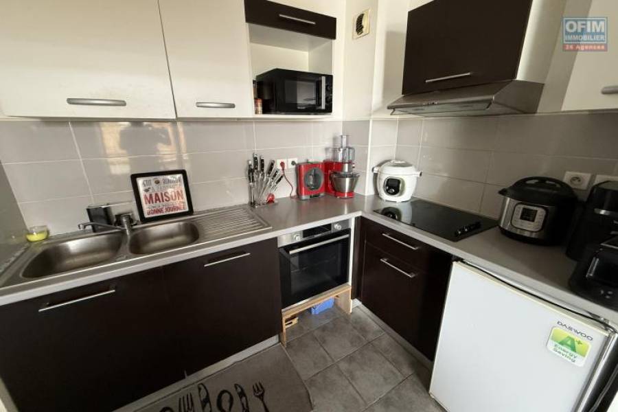 L'agence OFIM Étang Salé vous propose à la vente ce bel appartement T2 de 42,63 m² habitables + 9 m² de varangue donnant vue mer et montagne à l'abris du vent avec coucher de soleil toute l'année. Idéal pour un investissement locatif, cet appartement en parfait état est situé au 3 eme étage avec ascenseur. La résidence est sécurisée et fut construite en 2013, il y une place de parking privative. Il est constitué d'une belle varangue sans vis à vis direct, un séjour/cuisine US tout équipé, une chambre avec climatisation, ventilation et dressing, une salle de bains et des WC. L'appartement est loué jusqu'en 2028, avec un loyer de 553,94€ par mois, plus 31€ de charges locataire et 40€ de TEOM. La commission d'agence est à la charge du vendeur. Pour de plus amples informations ou pour organiser une visite, n'hésitez pas à contacter François HART (Agent commercial) au [coordonnées réservées] ou par email à [coordonnées réservées] Honoraires à la charge du vendeur 8A72253, Numéro de mandat: 2335ESH Tél. commercial: [coordonnées réservées]