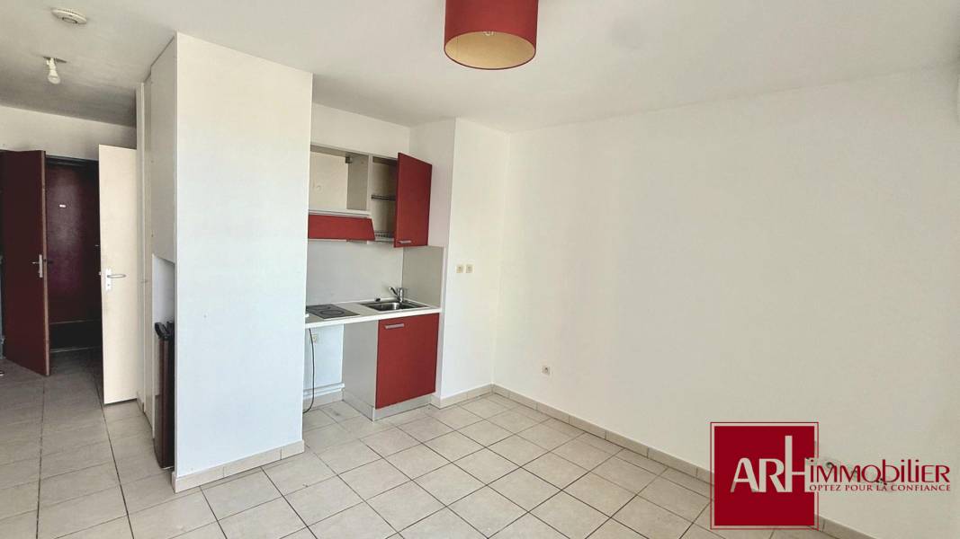 L'appartement comprend une pièce de vie avec un coin cuisine aménagée, une salle d'eau avec WC et une varangue de 3,20 m².