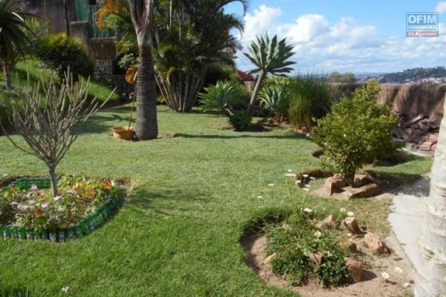 A seulement 10 min du centre ville, dans un cadre calme et sécurisé, cette propriété de 3 800 m2 est bâtie sur les hauteurs d'Ambohipotsy. Son emplacement lui offre une vue exceptionnelle de 180 °sur les collines de Tanà La villa est composée d'un hall d'entrée, d'un grand living avec cheminée, d'un spacieux salle à manger avec une 2ème cheminée, d'une suite parentale avec dressing, baignoire d'angle, douche et toilette séparé, de 3 chambres avec salle de bain et wc attenante, de 2 bureaux et d'une cuisine équipée avec cellier. La terrasse s'ouvre sur un extérieurt aménagé en un beau jardin gazonné et arboré. Le grand plus du terrain est de pouvoir encore accueillir un projet d'immeuble ou autre dans l'enceinte Prix 400 000 € ( le prix en Ariary varie suivant le taux du jour) Contact Felana 034 16 547 55 Honoraires à la charge du vendeur 24A62186, Numéro de mandat: 2541T Tél. commercial: 0341654755