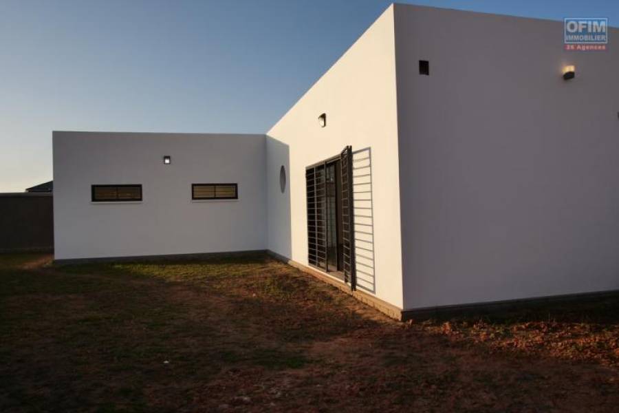 Villa neuve, style traditionnel Malagasy. Sise à Manazary Ilafy, à 15mn (4km) du Lycée Français Ambatobe Accessible, 1er plan, à 10m de la route principale en pavé Belle vue panoramique Terrain 500m2 Surface habitable 120m2 3 chambres : 1 suite parentale avec douche wc, 2 chambres avec 1 douche commune et wc séparé Cuisine ouverte sur living Electricité : coûts branchement Jirama payés, attente branchement Eau : puit avec pompe immergée, remplissage automatique cuve Makiplast 1m3. Cuisine ouverte, meubles et accessoires au choix (sous conditions) Dressing : meubles et accessoires au choix (sous conditions) Dépendance gardien Quartier en développement Fibre optique à proximité Papiers en règle Prix 650.000.000AR Contact Mme Francia 034 02 218 69 Honoraires à la charge du vendeur 28A65235, Numéro de mandat: 272T3 Tél. commercial: 0340221869