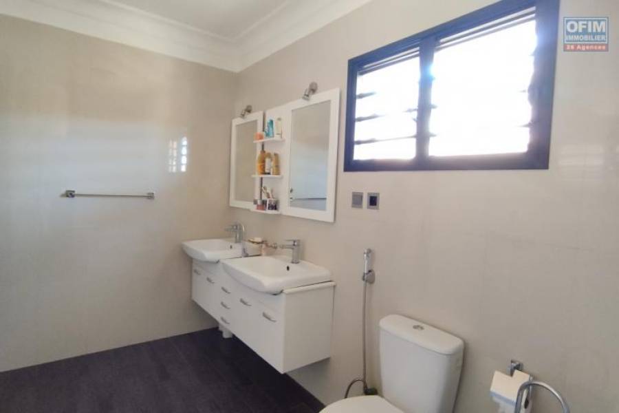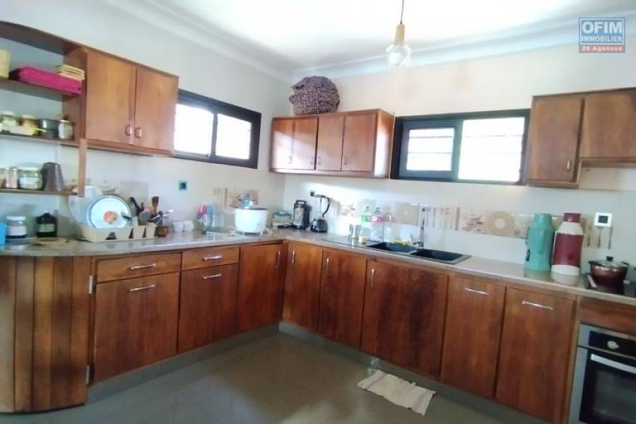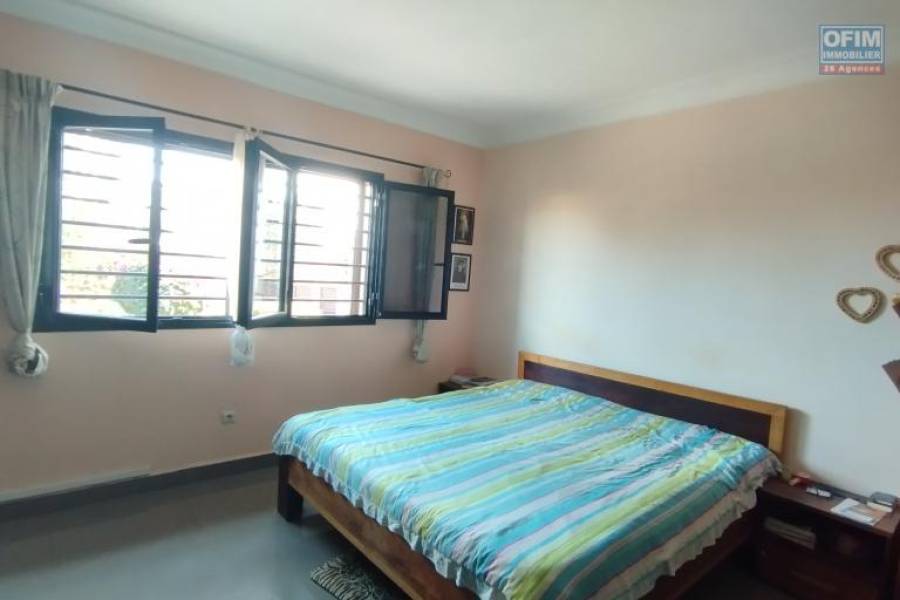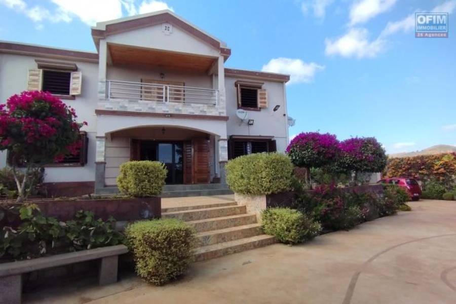 A vendre, une villa F7 à étage disposée comme suit, au RDC: un grand living avec cuisine ouverte équipé, une chambre parentale avec dressing et salle de bain attenante, une toilette visiteur et un coin buanderie. A l'étage vous avez 4 grande chambre, dont une avec salle d'eau attenante, et une salle de bain commune, un séjour qui s'ouvre sur une terrasse. A l'extérieur, une chambre d'ami au dessus de la dépendance gardien, une cuisine extérieure, une chambre de bonne, un terrain de basket, un garage pour 2 voitures et un beau jardin. Prix 850 000 000 Ariary Contact Felana 034 16 547 55 Honoraires à la charge du vendeur 24A67467, Numéro de mandat: 2932T Tél. commercial: 0341654755