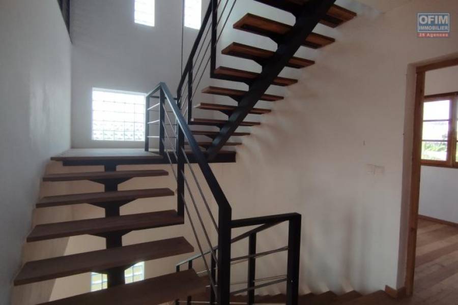 Nous mettons en vente cette belle villa de type F4 de style traditionnel malgache avec piscine à Ambohitrimanjaka Elle est comprend RDC: -un grand living qui s'ouvre sur une terrasse et sur la grande piscine - une cuisine placardée -un buanderie - wc visiteur A l'étage : -3 chambres dont une suite parentale -salle de bain commune -un grand balcon Un spacieux comble aménageable au 2ème étage. L'extérieur vous offre une grande piscine avec son coin barbecue, un jardin arboré, une maisonnette pouvant servir de bureau et une dépendance gardien 6 places de parking Prix 850 000 000 Ariary Contact Felana 03416554777 Honoraires à la charge du vendeur 24A68876, Numéro de mandat: 3000T Tél. commercial: 0341654755