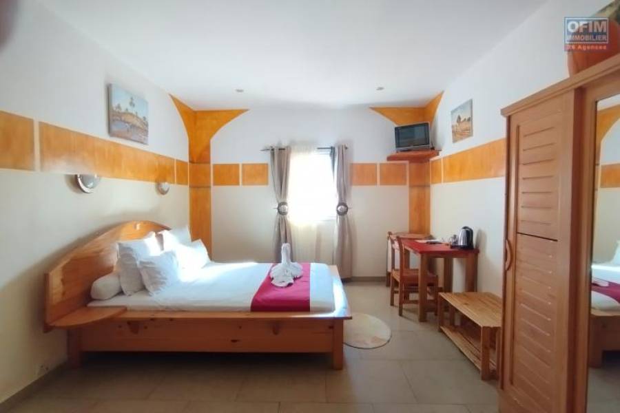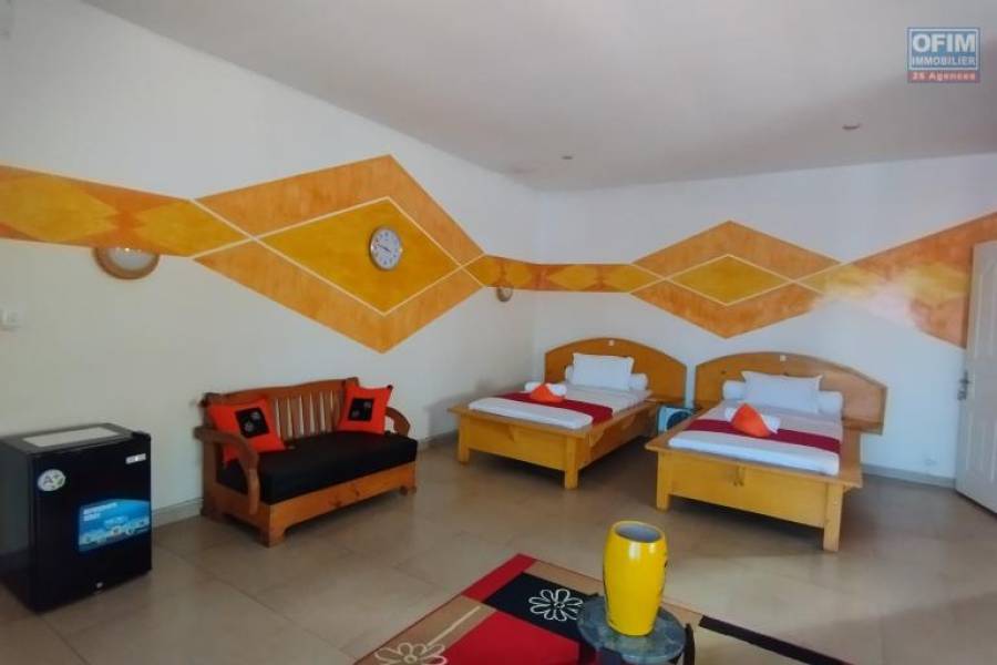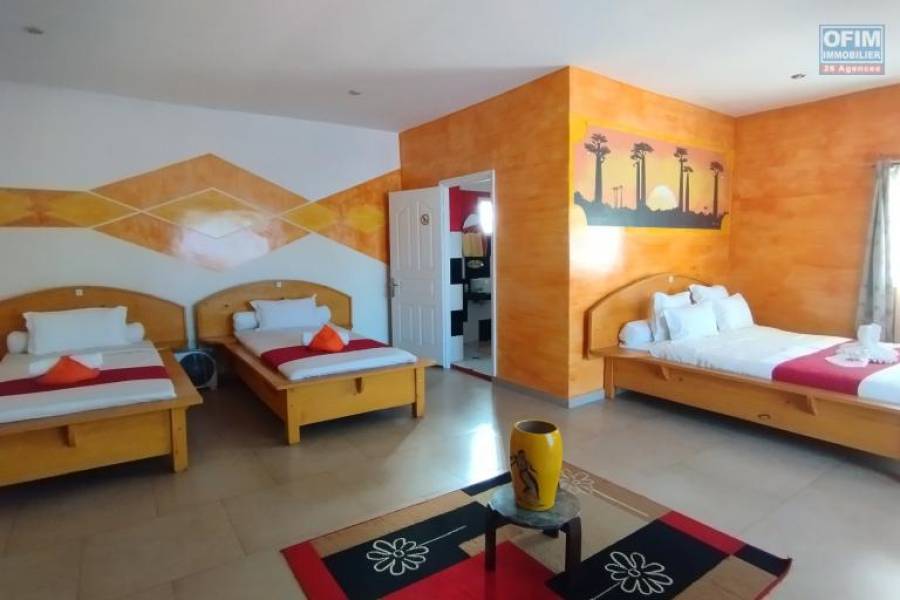 Nous mettons en vente cette villa F6 bâtie sur 900 m2 de terrain. Elle est composée d'un grand séjour, avec son coin bar, d'une spacieuse cuisine et d'une grande suite parentale au rez-de-chaussée avec terasse. L'étage et constituée de 5 grandes chambres en suite également, et d'une terrasse. A noter que la maison est actuellement en activité, chambre d'hôte très rentable à 5 min de l'aéroport, dans un quartier calme avec de bon voisinage. A l'extérieur, un grand parking Prix 1 400 000 000 Ariary Négociable Contact Felana 0341654755 Honoraires à la charge du vendeur 24A69450, Numéro de mandat: 3062T Tél. commercial: 0341654755