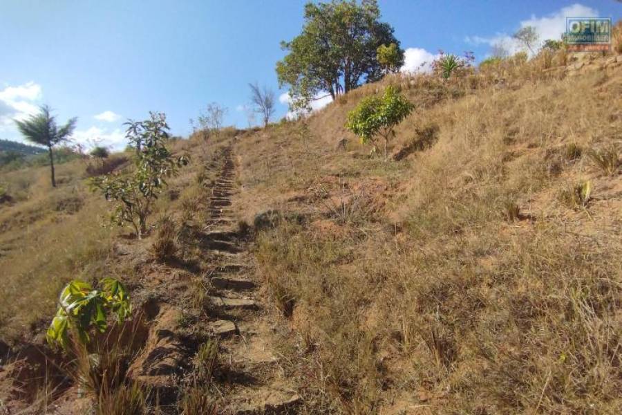 Nous vous proposons cette propriété de 3 260 m2 Idéal pour ceux qui recherchent la tranquillité et un cadre de vie ressourçant. Elle se situe en montagne, exposé plein Ouest pour que vous puissiez apprécier les couchers de soleil et depuis votre jardin. Dessus est bâti une villa basse F5 composée d'un salon de 2 chambres, d'une cuisine, d'une douche, de 2 autres chambres avec cuisine, et salle d'eau indépendants. La maison est alimentée par une source d'eau pure naturelle La propriété est entourée de plusieurs arbres fruitiers, garantissant un environnement naturel et paisible. Le terrain est déjà emménagé en plusieurs plateaux plats avec un étang à poisson. Terrain clo Prix 100 000 € ( au taux du jour) Contact Felana 0341654755 Honoraires à la charge du vendeur 24A69594, Numéro de mandat: 3070T Tél. commercial: 03416547555
