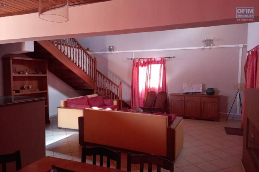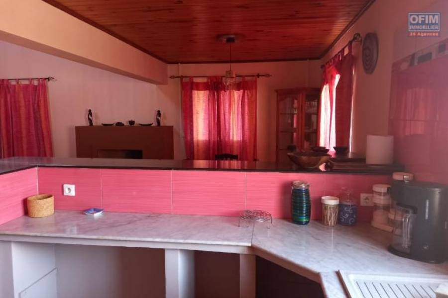 Nous vous proposons à la vente cette villa basse, moderne , F4 sis à Alasora. Elle est dotée d'un grand living avec cheminée et coin cuisine, de 2 chambre, d'une salle de bain er d'un grand mezzanine. L'extérieur vous offre une grande terrasse et un beau jardin arboré. Avec une dépendance gardien et un garage fermée pour 2 voitures. Prix 360 000 000 Ariary Contact Felana 034 16 547 55 Honoraires à la charge du vendeur 24A70070, Numéro de mandat: 3136T Tél. commercial: 0341654755