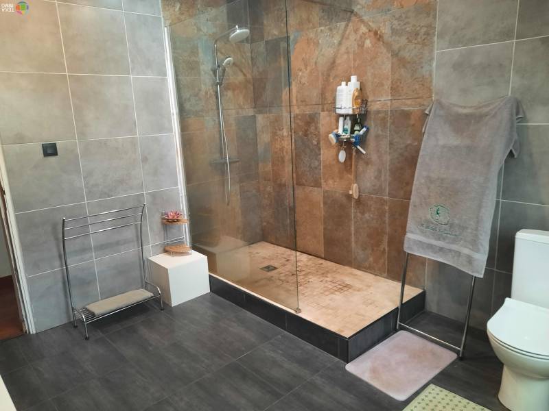 Une salle de bain équipée d’une douche à l’italienne et d’un WC intégré.
