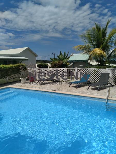 Vous recherchez un investissement immobilier avec une forte rentabilité, ne cherchez plus ! Votre agence Nestenn vous propose à la vente dans un secteur calme à Capesterre-Belle-Eau un complexe composé d'une maison principal sur 2 niveaux avec un F3 à l'étage et un T2 en rez de jardin ainsi que 3 bungalows et une grande piscine commune. La maison comprend à l'étage : 1 Séjour avec une cuisine ouverte sur le séjour, 1 séjour, 2 Chambres avec leur propre salle d'eau,1 Terrasse. Au rez de Jardin : 1 T2 et la piscine commune Dans le jardin ; 3 Bungalows comprenant chacun 1 Chambre, 1 salle d'eau, 1 Pièce à vivre, 1 Coin cuisine , 1 Terrasse. Cet ensemble est édifié sur une parcelle de 1 000 m2 et vous propose une vue mer et une vue dégagée sur la montagne Le prix de vente est de 495 000 euros ; Les honoraires d'agence sont à la charge du vendeur, DPEG : C Contactez-nous pour réserver une visite ou de plus amples renseignements : Sophie au [coordonnées réservées] ou au [coordonnées réservées]. " Les informations sur les risque auxquels ce bien est exposé sont disponibles sur le site Géorisques" : www.georisques.gouv.fr" Sophie DRAGIN (EI) Agent Commercial - Numéro RSAC : 382030849 - Pointe à Pitre.