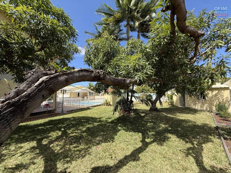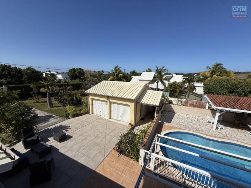 L'agence OFIM d'Etang Salé Les Hauts vous présente à la vente cette magnifique propriété F5/6 avec garages et piscine, idéalement située en hyper centre d'Etang Salé Les Hauts, en impasse, un véritable havre de paix, parfait pour une grande famille, le tout implanté sur un terrain plat de 1515 m² sans vis à vis, il est possible de construire d'autres habitations sur le terrain.