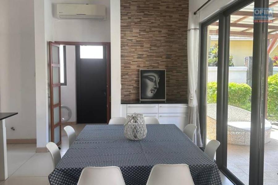Sur un terrain luxuriant de 633m², elle vous offre un cadre de vie exceptionnel. gRAND bAIE Intégralement meublée et équipée, cette demeure allie confort moderne et charme tropical. Profitez de : • Espaces de vie généreux: un grand séjour baigné de lumière, une cuisine équipée, une salle à manger conviviale. • 4 chambres spacieuses: 2 suites parentales et 2 chambres avec salle de bain commune pour accueillir famille et amis. • Extérieurs enchanteurs: une piscine au sel, une terrasse ombragée par une pergola, un jardin tropical, un parking. • Un quartier paisible: idéal pour se ressourcer tout en étant proche des commodités. Réf: 2628GB Idéal pour les familles ou les investisseurs. Prix: 600 000 € (hors frais) 16A69765, Numéro de mandat: 2628GB Tél. commercial: (+230) 5 748 7003