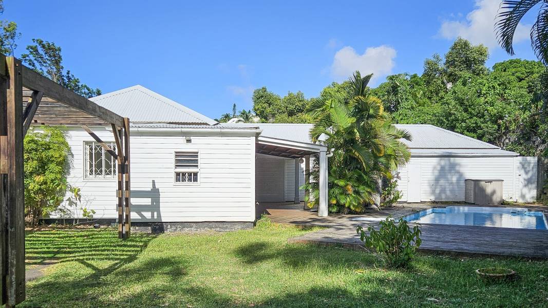 Vaste séjour / salle à manger, Cuisine ouverte sur séjour et varangue, Buanderie / cellier, Dégagement, Alcôve, 3 chambres dont une suite parentale avec séjour et salle de bain / WC privatifs, Bureau, Salle de bain indépendante, WC séparé, Espaces de rangement, Varangue, Piscine