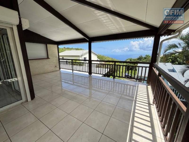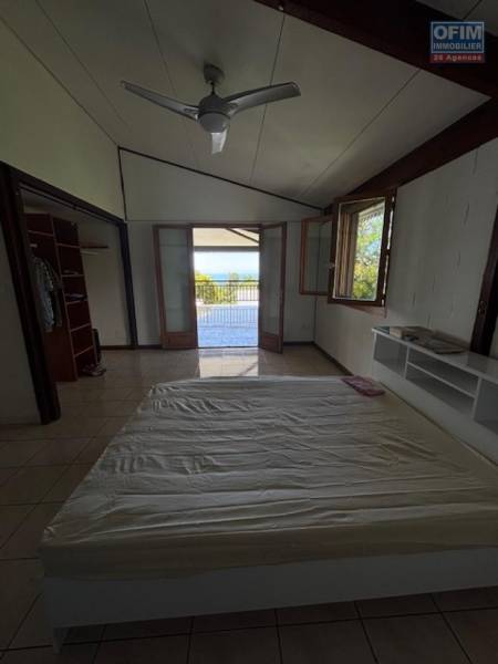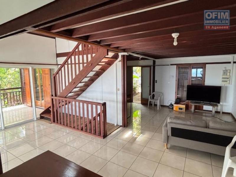 R.d.C = 3 chambres dont une parentale avec salle de douche attenante, un salon/salle à manger donnant sur une belle varangue avec vue dégagée, une mezzanine, une salle de bain, une cuisine séparée semi ouverte.