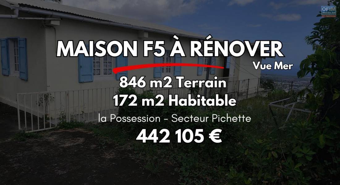 Située sur les hauteurs de La Possession, dans le secteur résidentiel recherché de Pichette, cette propriété offre une vue exceptionnelle et totalement dégagée sur l’océan, le port et toute la côte Ouest.