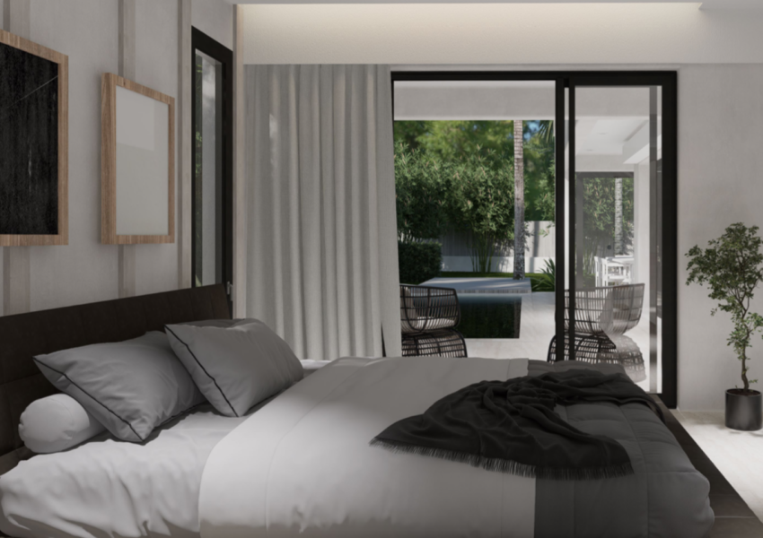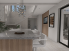 - au rez-de-chaussée: un séjour avec une cuisine équipée ouverte, une chambre avec un dressing, une salle de bain attenante et un wc. La terrasse de 40m2 est parfaite pour les moments de convivialité, donne sur une piscine au sel.