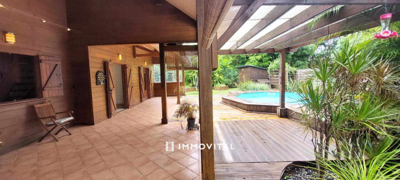 À VENDRE Charmante villa T4 + garage en bois rouge avec piscine, jardin clôturé, proche commodités