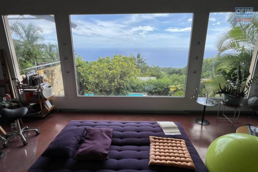 Jolie maison d'architecte F6 sur deux niveaux plus une dépendance F3, piscine, implantée sur 1038 m2 de terrain, vue océan et montagne imprenable.
