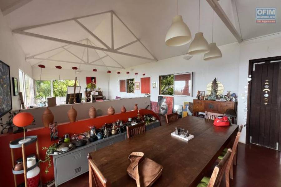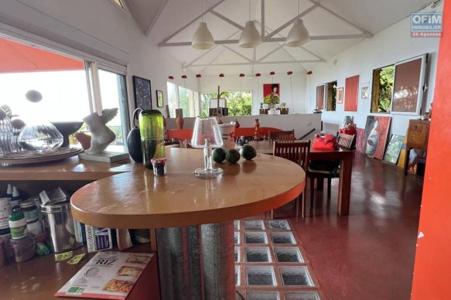 Vous recherchez une vue imprenable, proche du centre ville des Avirons, Ofim Etang Salé vous propose à la vente à 320 m d'altitude cette maison d'architecte F6 terminée en 2004 sur deux niveaux plus une dépendance F2/3 et piscine, implantée sur 1038 m2 de terrain. La maison se compose au RDC d'un grand séjour/salon/cuisine/varangue (109 m2), cellier et WC et en RDJ trois chambres (9,90, 13,35 et 13,75 m2 vue mer), une suite parentale avec dressing 21,20 m2 et SDB, 2 SDB avec WC, une pièce bibliothèque/médiathèque (21,60 m2), une buanderie, un patio, le tout pour 220 m2 habitables, à l'extérieur, une piscine (couloir de nage 2x10), un caillebotis, une maison F3 composée d'une pièce principale, séjour/espace cuisine, une chambre, SDE et WC de 52 m2 et varangue de 17,20 m2. Vue mer imprenable de la maison principale, deux portails d'entrée. quelques travaux de réfection à prévoir : étanchéité varangue, gouttières, plomberie à divers endroit, caillebotis piscine, fosse septique, aménagement intérieur de la dépendance qui peut tout à fait être une seconde habitation, sans la moindre nuisance avec la maison principale. Il y a chauffe eau solaire et plusieurs places de parking pour chaque habitations. Commission d'agence OFIM charge vendeur. Pour tous renseignements ou visites, contactez François HART (Agent commercial) [coordonnées réservées] ou [coordonnées réservées] Honoraires à la charge du vendeur 8A70940, Numéro de mandat: 2304ESH Tél. commercial: [coordonnées réservées]
