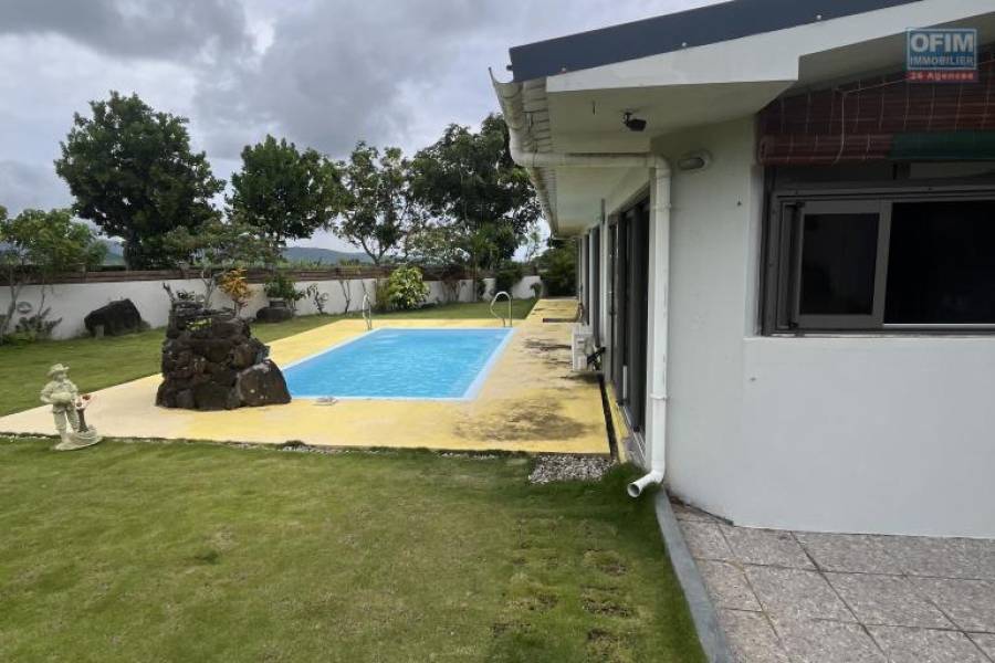 Découvrez cette magnifique villa de 295m², nichée dans un environnement calme et sécurisé, idéale pour une vie familiale paisible. Profitez d'un grand terrain de 1197m² arboré avec piscine, pour des moments de détente en famille et entre amis. Rez-de-chaussée : 3 chambres climatisées dont 2 suites parentales avec salle de bain privative. Une chambre avec dressing. Grande pièce à vivre lumineuse avec espace salon, salle à manger et cuisine aménagée SCHMITT entièrement équipée, avec un grand comptoir idéal pour les repas conviviaux. Cuisine grasse couverte et entièrement équipée. Double garage. 2 terrasse couvertes Étage : Une mezzanine ouverte offrant une vue imprenable sur le rez-de-chaussée. 2 pièces supplémentaires aménageables en chambres ou bureaux selon vos besoins. Les plus : Piscine privée Terrain spacieux de 1197m² Environnement calme et sécurisé du Domaine Piton Proximité des commerces, écoles et commodités Climatisation Mandat : 2690GB Prix : 28000000 RS Contact: Isabelle +230 5823 8220 Contactez-moi dès aujourd'hui pour une visite ! Honoraires à la charge du vendeur 16A70815, Numéro de mandat: 2690GB Tél. commercial: +230 5823 8220