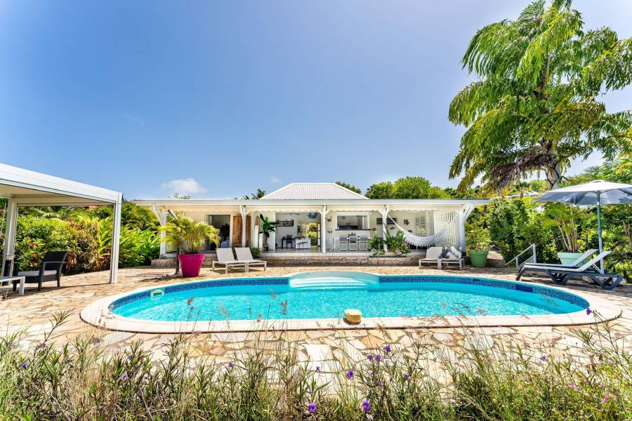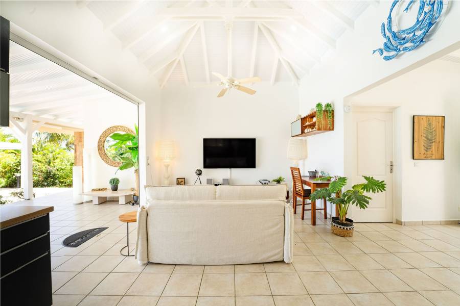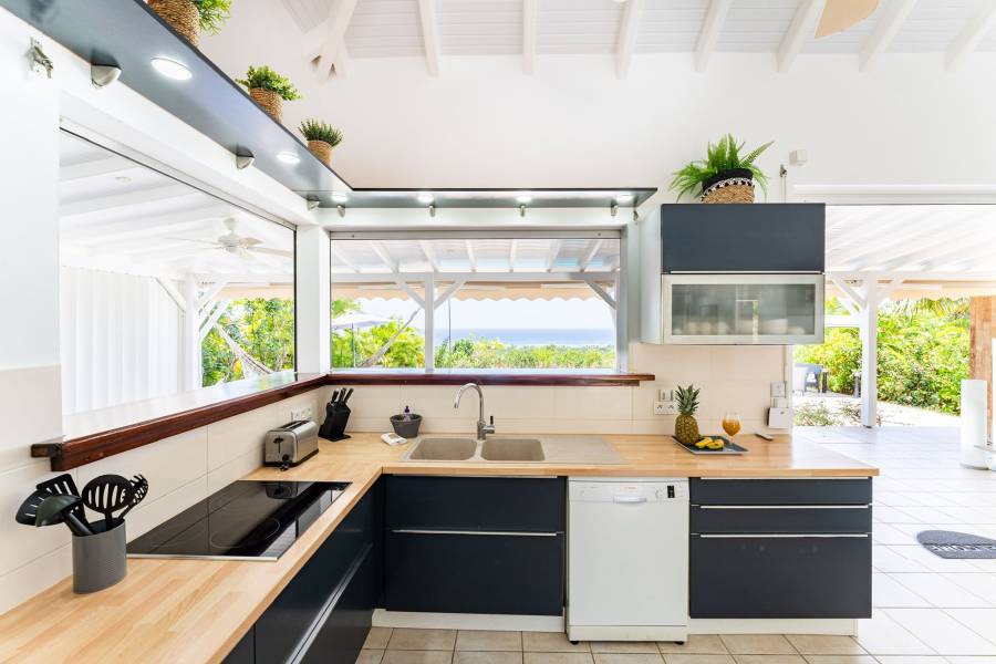 Située sur les hauteurs de Grand-Bourg, cette villa entièrement rénovée vous offre une vue panoramique exceptionnelle sur la mer. Dans un lotissement calme et recherché de Marie-Galante, elle allie confort, modernité et cadre idyllique.
