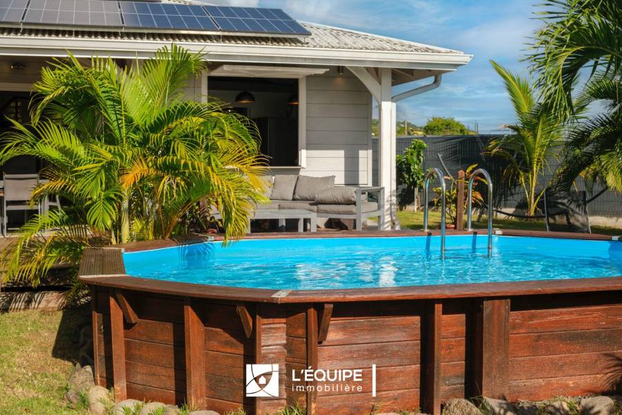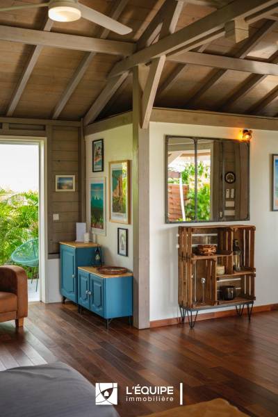 Idéalement située à deux pas des plages du Sud de l'île et des grands axes routiers, cette maison atypique de 95 m2 séduit par sa charpente apparente, ses espaces largement ouverts sur l’extérieur favorisant la ventilation naturelle, et sa parfaite intégration dans la nature.