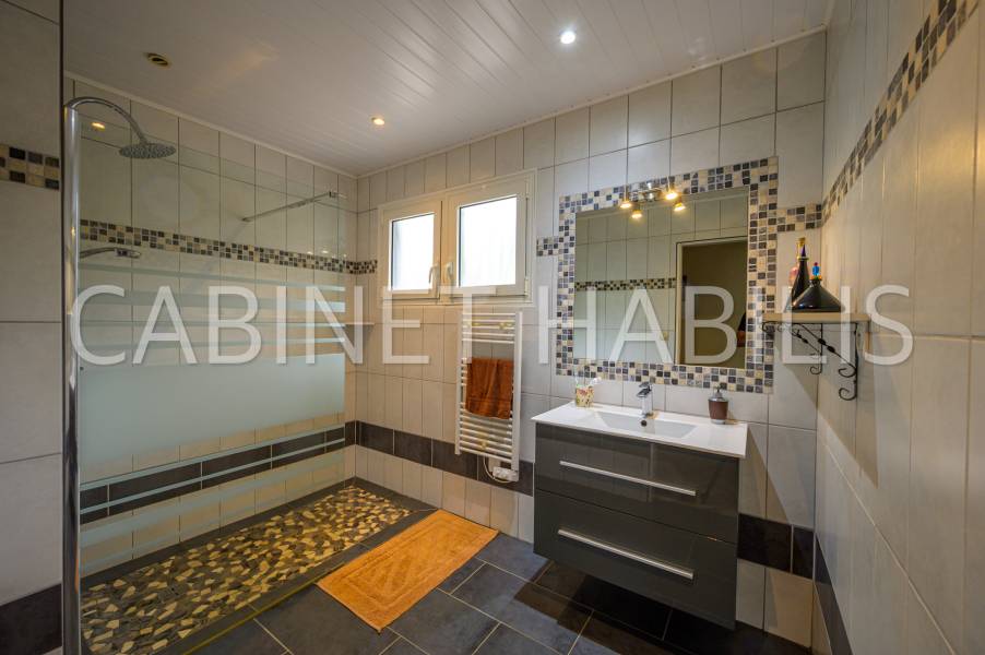 La villa se compose d'un grand séjour, d'une cuisine séparée, de cinq chambres, dont une pouvant être aménagée en dressing, ainsi que de deux salles d'eau et deux WC.