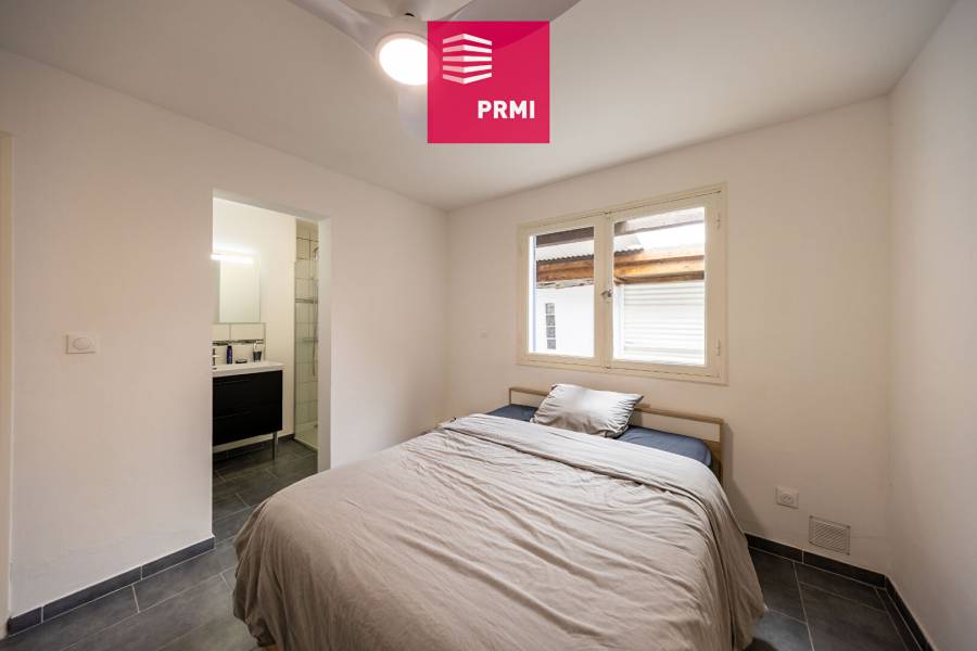 Très proche centre ville et de toutes ses commodités (commerces, écoles...). Au calme en impasse. Terrain clôturé (319 m2), avec possibilité de stationner jusqu'à 3 véhicules. Belle varangue entièrement rénovée, et terrasse. Maison individuelle, de construction traditionnelle, saine et bien entretenue. Très fonctionnelle car de Plain-pied et très lumineuse. Celle-ci a été rénovée il y a très peu de temps. Composée d'une entrée, pièce à vivre de 45 m2 : salon/salle à manger double avec cuisine américaine (aménagée et équipée) et accès direct sur varangue ensoleillée, 3 chambres avec chacune leur propre salle d'eau (soit 3 douches au total) et leur placard, WC (séparés). ps : en bonus, c'est cadeau ! un studio peut être aménagé facilement... Un bien rare dans ce secteur recherché ! A découvrir d'urgence... Exclusivité PRMI ! Visite possible dès maintenant avec le spécialiste de Petite-île : Arnaud TREMOULET. Tél : [coordonnées réservées] Mail : [coordonnées réservées] Honoraires à la charge du vendeur. Bien non soumis au DPE. Les informations sur les risques naturels auxquels ce bien peut-être exposé sont disponibles sur le site : georisques.gouv.fr