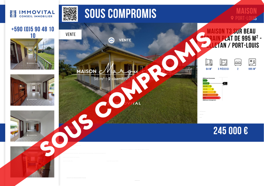 MAISON T3 SUR BEAU TERRAIN PLAT DE 995 M2 - PELLETAN / PORT-LOUIS