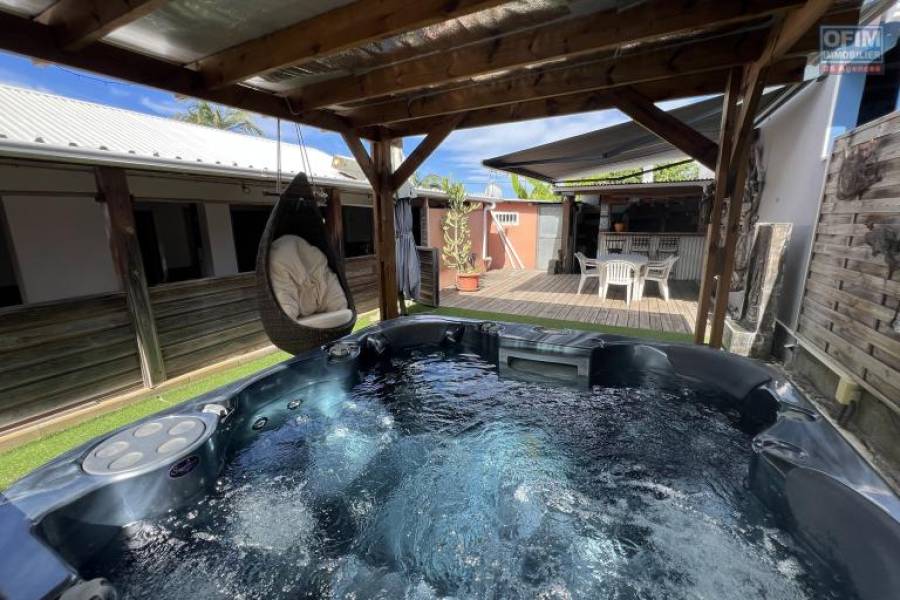 OFIM vous propose à la vente cette belle maison située entre le Ouaki et le centre de la Rivière St Louis, de type F6+ de 146 m2 habitables et 250 m2 utiles, implantée sur 530 m2 de terrain à 190 m d'altitude. Elle se compose au Rdc de deux belles chambres (12 et 14 m2), une suite parentale avec salle d'eau (16 m2), deux WC, une salle de bains, une belle douche extérieur/intérieur...un grand séjour/cuisine US de 38 m2, un salon de 18 m2, un varangue intérieure de 38 m2 donnant sur une jolie arrière-cour (80 m2) avec atelier fermé, cuisine d'été/bar (11 m2) donnant sur un bel espace de partage et détente avec un jacuzzi 4 personnes comme neuf, un garage fermé et accessible de l'intérieur de 41 m2. A l'étage, 2 grandes chambres ouvertes, une mezzanine et une petite varangue sous combles à finir d'équipée, avec vue mer imprenable. Devant, le jardin est fleuri, gazonné et arboré, il y a 5 places de stationnement intérieur et un portail électrique. Equipements : Chauffe eau solaire, plusieurs clims et brasseurs d'air. La TF s'élève à 2700€. La maison est en parfait état, aucun travaux à prévoir. Pour tous renseignements ou visites, contactez François Hart (agent commercial) au [coordonnées réservées] ou [coordonnées réservées] Honoraires à la charge du vendeur 8A70320, Numéro de mandat: 2290ESH Tél. commercial: [coordonnées réservées]