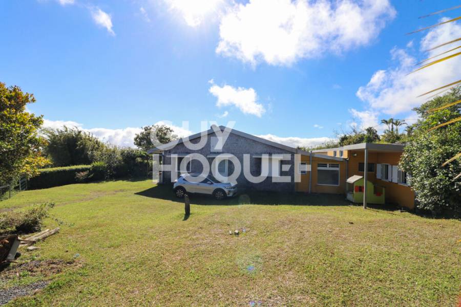 SAINT DENIS - LE BRÛLÉ Sur une parcelle arborée d'environ 1700m2, au centre ville du village du Brûlé, villa T4/5 rénovée d'environ 220m2 pour 264m2 utiles, composée d"un séjour d'environ 45m2, une cuisine équipée, 3 grandes chambres de plus de 20m2 dont une avec salle d'eau et WC, 2 bureaux, une buanderie, une salle d'eau et un WC. Place de parking - Possibilité d'aménager une dépendance avec entrée privative. Chauffe eau solaire Fosse septique Altitude : 840m