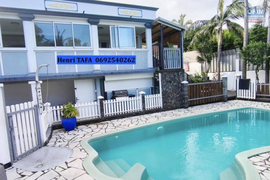 A Saint-Joseph sur le quartier de Vincendo ville. En exclusivité, venez découvrir cette belle villa F4 de 100 m2 avec sa piscine, à proximité à pied de toutes les commodités que vous propose le secteur de Vincendo avec ses boulangeries / patisseries, écoles, collège, lycée, le "Super U", médecins, dentiste, fruits et légumes, GABIER, ... le tout à pied ! La villa est édifiée sur un terrain de 472 m2 en zone U5cvd (constructible). Dés l'entrée, vous serez séduit par sa grande pièce de vie lumineuse et sa vue donnant sur la piscine, sa cuisine entièrement équipée et fonctionnelle, ses deux grandes chambres climatisées avec dressing. Une grande salle d'eau avec une douche italienne et un wc séparé viennent compléter l'ensemble pour votre confort. A l'étage, vous disposerez d'une mezzanine qui fera trés bien office de chambre. A l'extérieur, vous profiterez d'un belle et grande piscine, d'un coin jardin et de repos, arboré et fleuri, qui sauront accueillir vos proches et vos invités ! Un espace de rangement bien utile compléte le tout. Vous disposerez aussi d'un emplacement pour trois véhicules et le tout est clôturé. Elle est situé à 10 minutes de Saint-Joseph, de la route principale et de beaux coins touristiques comme "Cap jaune" avec sa superbe falaise de couleur ocre atypique, son sentier littoral, de la marine de Vincendo et sa magnifique baie. Idéalement situé, dans un secteur trés dynamique, cette villa vous ravira, pour votre lieu de vie ou pour de la location touristique. Venez la visiter et appelez moi, Henri TAFA (RSAC 503952848) au [coordonnées réservées] / [coordonnées réservées] / [coordonnées réservées] Honoraires à la charge du vendeur 9A71345, Numéro de mandat: 2192J Tél. commercial: [coordonnées réservées]