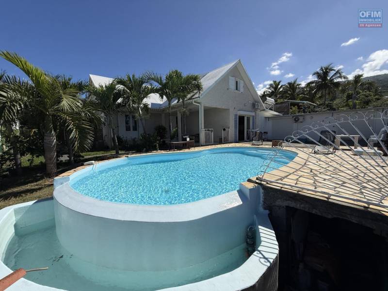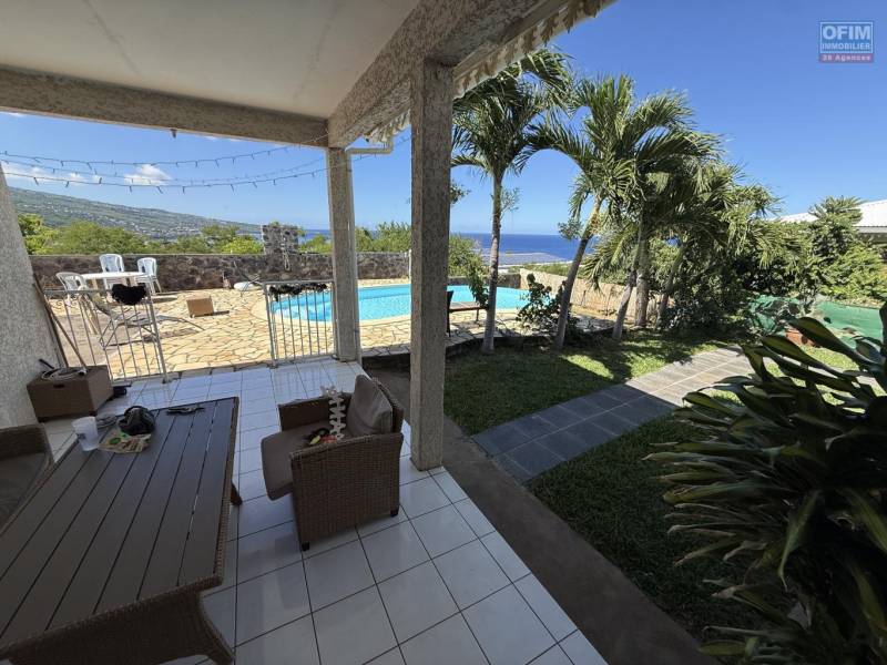 Maison en R+1 constituée de trois logements (T4+T3+T1), garage, belle piscine au sel, située à la Pointe des Châteaux, sur une terrain de plat de 600 m² offrant une vue imprenable sur l'océan et la montagne.