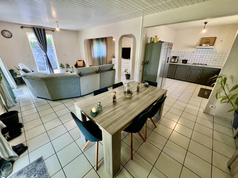 SAINT PHILIPPE 97442 - PRIX ATTRACTIF pour cette maison F4 entièrement de plain pied À VISITER SANS PLUS ATTENDRE!!! D'une surface habitable d'environ 88 m2, la maison bénéficie d'une pièce à vivre conviviale d'environ 44,50 avec cuisine aménagée ouverte sur la varangue d'environ 15 m2 depuis laquelle vous accéderez au jardin verdoyant. Côté nuit, les chambres sont agréables et la salle d'eau lumineuse. Nichée sur un terrain plat et clôturé d'environ 370 m2, ce bien constitue une belle opportunité et offre un fort potentiel. Située dans un secteur facile d'accès et proche des commodités. Idéal pour qui souhaite en faire sa résidence principale ou de l'investissement locatif.