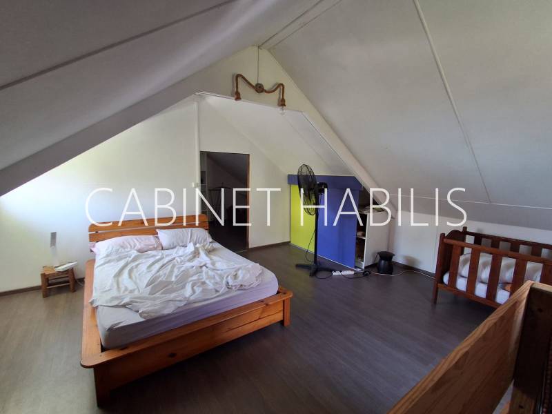 À l’étage, sous les combles, se trouve une chambre supplémentaire d’environ 15 m2.