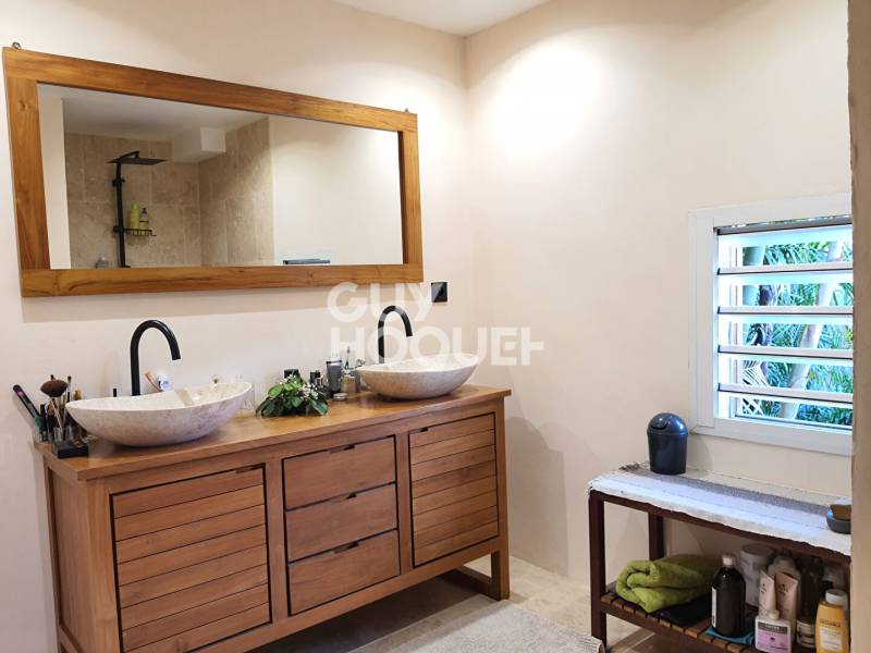 L'agence Guy Hoquet a l'honneur de vous proposer cette magnifique villa située à la Ravines des Cabris dans un charmant quartier au calme. Avec ses 197m² habitables sur son terrain de 531 m² , ce bien est composé comme suit : Au rez-de-chaussée, vous accédez par une pièce de vie de 58 m² avec son salon/salle à manger ouvert sur une cuisine américaine équipée et aménagée, une suite avec salle d'eau, deux bureaux pouvant être aménagés en chambres, un dressing et un Wc. Un T2 de 18m² avec accès indépendant vient compléter ce niveau. Vous pourrez également profiter d'une varangue de 13 m² donnant sur un espace arboré. L'étage, aujourd'hui utiliser comme espace professionnel avec son entrée indépendante, est aussi communiquant par l'escalier du salon. Il est constitué d'une grande pièce de 27m² , 3 chambres dont deux parentales, d'une terrasse donnant accès à la piscine et d'un wc. Venez découvrir sans tarder ce bien aux prestations de qualité, au calme, sans vis-à-vis et à deux pas des écoles et centres commerciaux. Les plus : - Piscine au sel et chauffée - Installation photovoltaïque de 8,6 KW avec batterie et revente à EDF - Garage 2 place. - Idéal pour maison familiale ou projet de gîte. - Aucuns travaux à prévoir Les informations sur les risques auxquels ce bien est exposé sont disponibles sur le site Géorisques : www.georisques.gouv.fr Référence annonce : 3098 Copropriété de 2 lots. GWENAEL LAUDREN (EI) Agent Commercial - Numéro RSAC : 890 998 321 - SAINT-PIERRE.