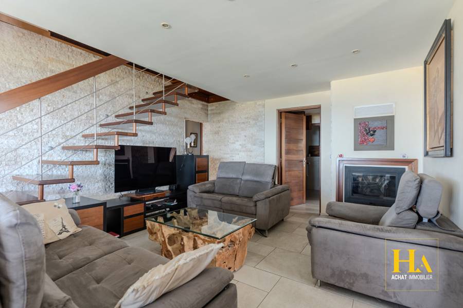 En Exclusivité Villa avec vue panoramique Mont Vert Les Hauts Située à environ 600 mètres d'altitude, dans le secteur prisé de Mont Vert Les Hauts, cette propriété offre un cadre de vie exceptionnel avec une vue imprenable sur l'océan et les montagnes. La maison est organisée sur deux niveaux et comprend trois appartements indépendants, permettant différents projets : résidence principale, projet familial ou investissement locatif. Le logement principal est un T4 de 173 m² avec une spacieuse pièce de vie de 76 m², lumineuse et ouverte sur l'extérieur. Les matériaux choisis apportent charme et élégance : menuiseries aluminium, portes en bois massif et cheminée avec insert. A l'étage, une mezzanine de 30 m² complète l'espace de vie. L'espace nuit comprend : Une suite parentale de 36 m² Une suite invités de 25 m² Une troisième chambre de 16 m² A l'extérieur, la villa dispose d'une grande terrasse de 120 m² avec piscine, aménagée avec une pergola bioclimatique, idéale pour profiter du climat et de la vue panoramique. La propriété comprend également : Un T3 de 58 m² Un T2 de 37 m² Garage carrelé de 50 m² avec buanderie et stockage Borne de recharge pour véhicule électrique Système d'alarme, vidéosurveillance et 2 portails automatiques Implantée sur une parcelle d'environ 600 m², la propriété a été pensée pour offrir des extérieurs faciles à entretenir. Les aménagements privilégient les espaces de vie et de détente, permettant de profiter pleinement de la terrasse et de la piscine sans les contraintes d'un grand jardin. La villa offre ainsi un cadre de vie confortable, idéal pour habiter tout en générant des revenus locatifs. Maison vendue meublée, prête à habiter ou à louer. Bien rare dans le secteur. Photos et renseignements supplémentaires disponibles sur demande. Pour plus d'informations ou pour organiser une visite, contactez votre agence HA IMMOBILIER. Patrice MOULANT [coordonnées réservées] [coordonnées réservées][coordonnées réservées] Agent Commercial indépendant (EI) RSAC 481 585 107 Bien non soumis au DPE Les informations sur les risques naturels auxquels ce bien peut être exposé sont disponibles sur le site: www.georisques.gouv.fr Patrice MOULANT (EI) Agent Commercial - Numéro RSAC : 481585107 - SAINT PIERRE.