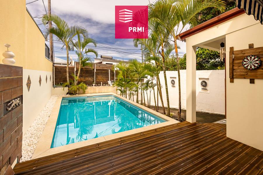 En Exclusivité, l'Agence PRMI à l'honneur de vous propose cette Charmante Maison individuelle de type F4 idéalement située dans le quartier très recherché de Terre Sainte à Saint-Pierre 97410. A seulement quelques minutes à pied du front de mer, du centre-ville, des commodités du secteur et du CHU, tout en profitant d'un environnement calme où il fait bon vivre. Construite en 2005 et parfaitement entretenue, cette maison d'environ 90 m² habitables, implantée sur un terrain de 165 m², offre un cadre de vie à la fois confortable et convivial. Dès l'entrée, le séjour avec cuisine ouverte invite aux moments de partage, dans une atmosphère chaleureuse et fonctionnelle. Le rez-de-chaussée dispose également d'une salle d'eau et d'un WC séparé pour plus de praticité au quotidien. A l'étage, trois chambres accueillantes composent l'espace nuit, complétées par une salle de bain et un WC indépendant. A l'extérieur, le Charme opère Immédiatement ! A l'avant de la maison, la Piscine au sel s'étend dans le prolongement direct de la Varangue de 12 m², créant un véritable espace de détente baigné de douceur. A l'arrière, une Cour plus intimiste abrite un Jacuzzi, à l'abri des regards, pour profiter pleinement des belles soirées du Sud, Une place de stationnement sécurisée à l'intérieur de la propriété vient compléter ce bien sans travaux à prévoir ! Une maison chaleureuse, prête à accueillir une nouvelle histoire, dans l'un des secteurs les plus prisés de Saint-Pierre ! Le reste se découvre lors de la visite ! Pour plus de visuel et d'informations une visite virtuelle est disponible ! Contactez dès maintenant Bruno DESCONTUS pour organiser une visite au [coordonnées réservées] ou par email à [coordonnées réservées]