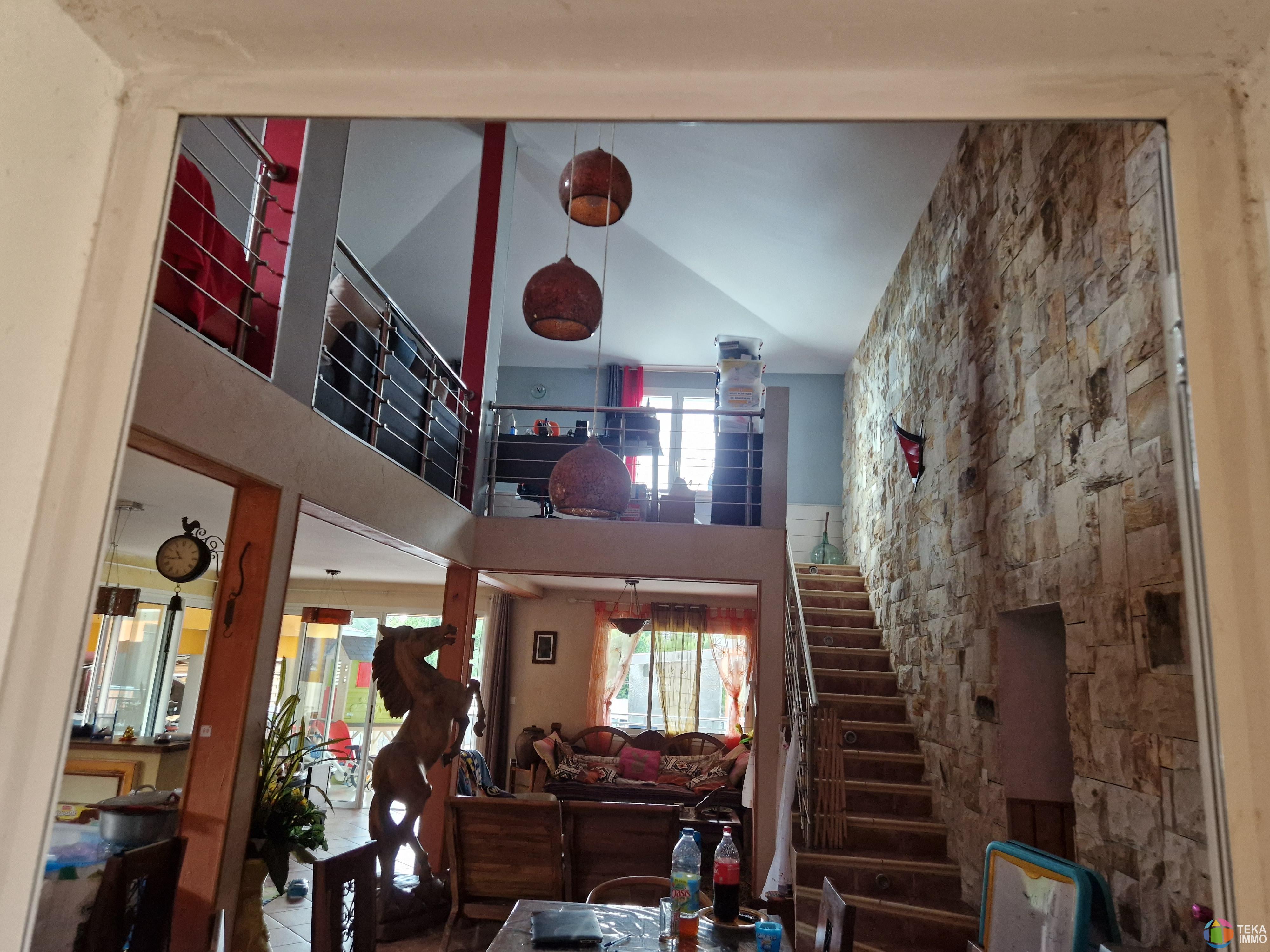 maison F5 d'environ 180m2 avec piscine sur un terrain de 782M2 compose de 4 chambres: au rdc: 3 chambres, un sjour de 55M2, une cuisine ouverte de 12,5M2, une salle d'eau, une varangue de 41,5M2, un cellier de 18M2, un garage de 31,5M2, terrasse arrire de 17,5M2, et cuisine au feu de bois et un jardin, l'tage une mezzanine de 32M2, et une suite parentale de 20M2 avec balcon vue mer, situe st-clotilde la bretagne a moins de 10 minutes du bd sud. Ce bien vous est propos au prix de 630000 euros, honoraires la charge DU VENDEUR . DPE non requis. Contactez votre Agent mandataire Teka Immo KADER EI au [coordonnées réservées] ou [coordonnées réservées] inscrit au tribunal de Saint Denis sous le numro R.S.A.C 812 383 531.Annonce rdige sous la responsabilit ditoriale de l'agent. Barme visible sur le site de Teka Immo. http://www.tekaimmo.fr/pdf/honoraires.pdf Les informations sur les risques auxquels ce bien est expos sont disponibles sur le site georisque : www.georisque.gouv.fr\n