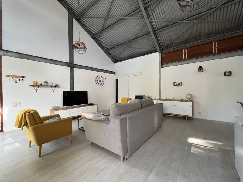 AMICASA IMMOBILIER vous présente à la vente cette jolie maison d’architecte de type T4/5, principalement de plain-pied avec mezzanine, développant une surface habitable d’environ 125 m2.