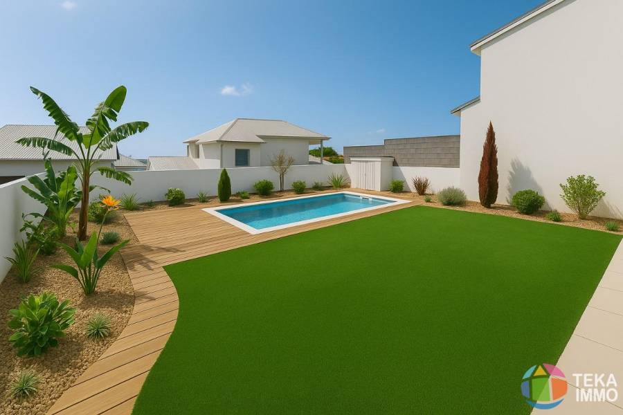 Opportunit saisir: cette superbe villa contemporaine de 111,83 m de surface utile (dont 82,79 m habitable), difie sur un terrain de 309 m, niche au cur du quartier trs recherch de Beausjour Sainte-Marie. Un bien neuf (livr en juillet 2025), jamais habit, prt habiter (sans travaux) et couvert par la garantie dcennale et dommage ouvrage.Confort et modernit au rendez-vousDs lentre, vous serez sduits par une vaste pice vivre de 30m2 :Un salon lumineux ouvert sur lextrieur.Une cuisine amnage et quipe haut de gamme (four, micro-ondes, lave-vaisselle, hotte - sous garantie) prte lemploi.Trois suites privatives, chacune avec sa salle deau moderne.Un bureau parfaitement adapt au tltravail.Deux WC indpendants.Un extrieur pens pour vos instants de dtente: Une terrasse couverte avec coin cuisine extrieur, idale pour recevoir.Une seconde terrasse avec vue mer imprenable, pour des soires inoubliables.Une piscine au sel (2mx5m), garantie vie, pour profiter pleinement du climat runionnais.Une pergolas bioclimatique prte poser est offerte.Atouts techniques et praticit:Chauffe-eau solaire (300 litres).Raccordement au tout--lgout.Menuiseries et portail en aluminium haut de gamme.Accs fibre optique.Stationnement facile dans la cours et devant la maison (multiples places disponibles dans le lotissement).Emplacement privilgi:Situe en plein cur de Beausjour, vous tes seulement quelques minutes des commerces, coles, collge (priv et public) et des axes principaux. Un quartier pris qui allie dynamisme et qualit de vie.Coproprit de 46 lots sans charges, exonre en compensation dune servitude de rseaux.Points forts retenir : villa neuve, jamais habite, prte habiter (sans travaux), 3 suites avec salles deau privatives, cuisine quipe, piscine au sel garantie vie, vue mer, quartier recherch.Au prix de 440.500. Honoraires la charge du vendeur. Infos/visites contacter DELMAS Yann agent mandataire indpendant du rseau TEKA IMMO. Tel: [coordonnées réservées] - Inscrit au RSAC de Saint Denis sous le n 832640825. Barme des honoraires visible sur notre site internet TEKA IMMO https://tekaimmo.fr/honoraires.pdf. Annonce rdige sous la responsabilit ditoriale de l'agent. Les informations sur les risques naturels (sisme, inondations, volcans etc.) auxquels ce bien est expos sont disponibles sur le site georisque : www.georisque.gouv.fr - Contactez-nous ds aujourdhui pour organiser une visite et dcouvrir tout le potentiel de cette maison moderne Sainte Marie.\n