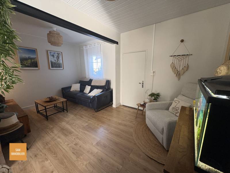 La maison se compose d'une entrée sur séjour/salle à manger, deux chambres, une salle de bain, un WC, une cuisine séparée, entièrement aménagée et équipée, un cellier/buanderie, une terrasse.