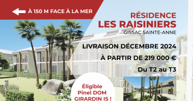 Localisation : Anse Caritan, Sainte-Anne 97227 MartiniqueSurface habitable : 22 m2 + terrasse 6,5 m2Prix de vente : 162 000€Contact : Sophie SCHAMBER [coordonnées réservées]