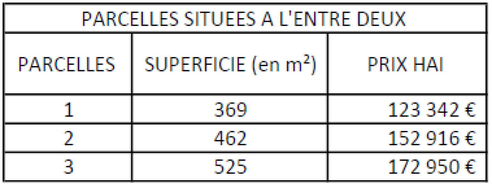 Lot no3 : superficie d’environ 525 m2 au prix de 172 950 € HAI.